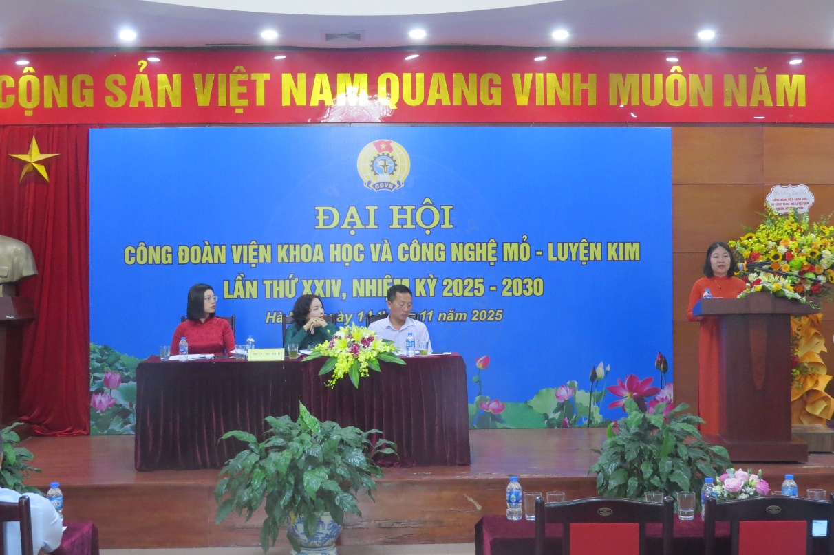 Vừa qua, Công đoàn Viện Khoa học và Công nghệ Mỏ - Luyện kim đã tổ chức Đại hội đại biểu Công đoàn lần thứ XXIV, nhiệm kỳ 2025 - 2030. Tới dự và chỉ đạo Đại hội có đồng chí Phan Thị Diệu Loan Uỷ viên Ban Thường vụ, Trưởng ban Tổ chức - Kiểm tra, Công đoàn Công Thương Việt Nam, đồng chí Đào Công Vũ, Phó Bí thư Đảng ủy, Phó Viện trưởng, đồng chí Tạ Dương Sơn, Phó Bí thư Đảng ủy, Phó Viện trưởng Viện Khoa học và Công nghệ Mỏ - Luyện kim.