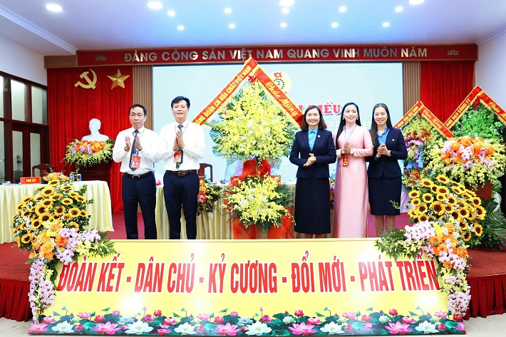 Ông Lê Đức Thọ, Phó Chủ tịch Liên đoàn Lao động tỉnh Bắc Ninh tặng hoa chúc mừng Đại hội